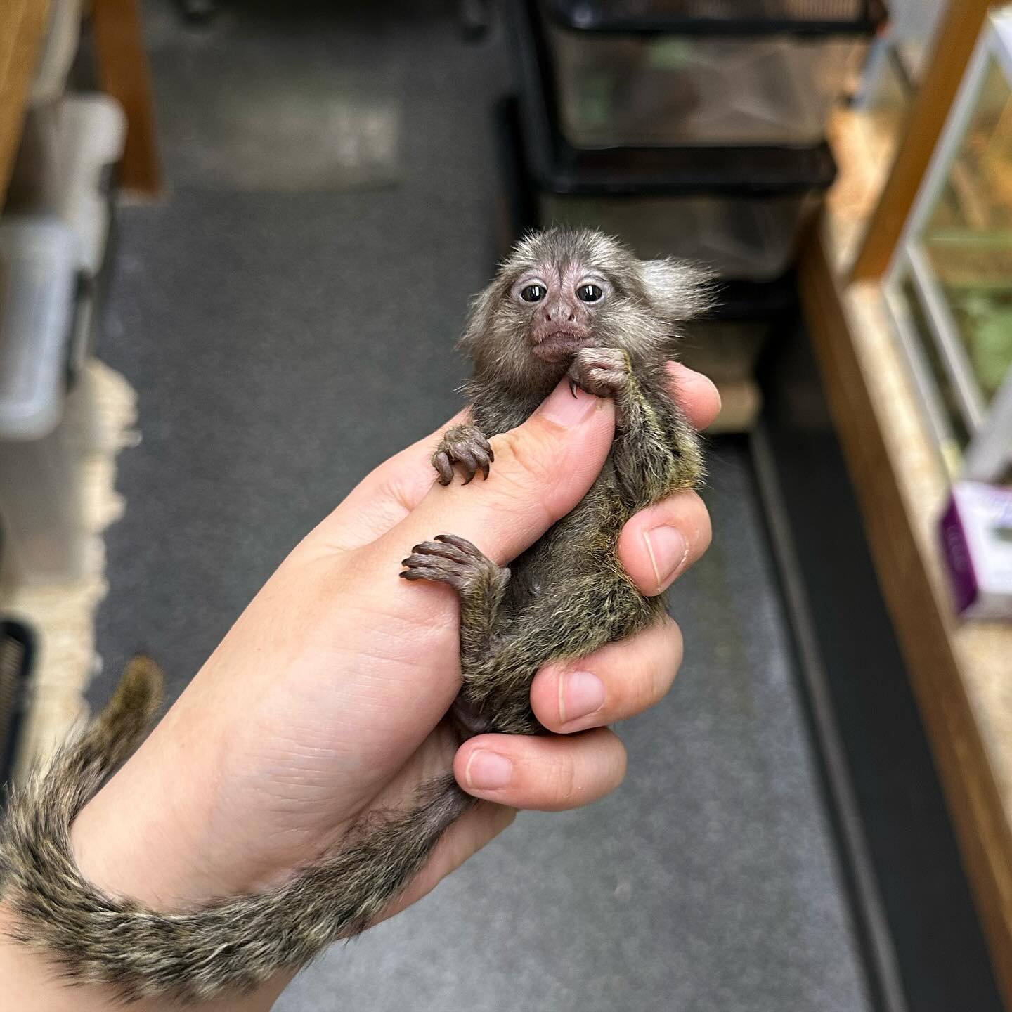 Our baby marmosets are hand-raised from birth, making them gentle, sociable, and well accustomed to human contact. They are raised in a safe, caring environment, where they are exposed to people and other animals, helping them transition smoothly into their new homes.